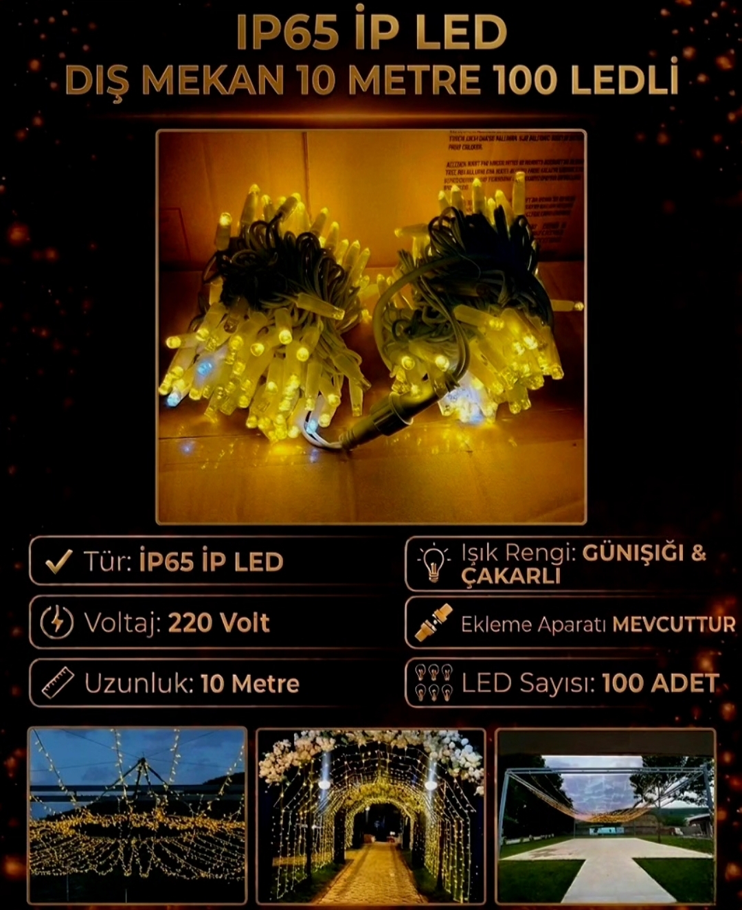 Dış mekan projelerinizde profesyonel bir ışıklandırma çözümü arıyorsanız, dayanıklılığı ve şıklığı bir arada sunan bu özel seri tam size göre. 10 metrelik uzunluğu ve sık LED dizilimi sayesinde bahçeler, yürüyüş yolları ve ağaç süslemeleri için eşsiz bir görsel zenginlik sunar. IP65 koruma sınıfı ile yağmur ve kar gibi dış etkenlerden etkilenmeden dört mevsim güvenle kullanabileceğiniz bu ürün, mekanınıza sıcak bir enerji ve canlılık katar.