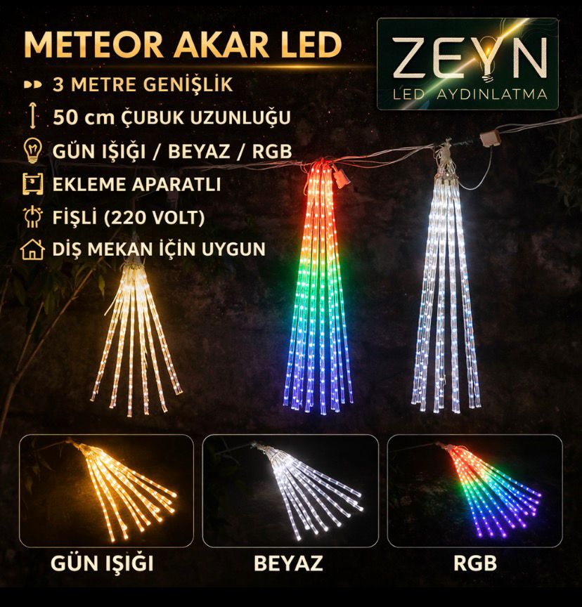 Işık Efekti: Meteor (yağmur damlası) efektli, hareketli özel LED teknolojisi.